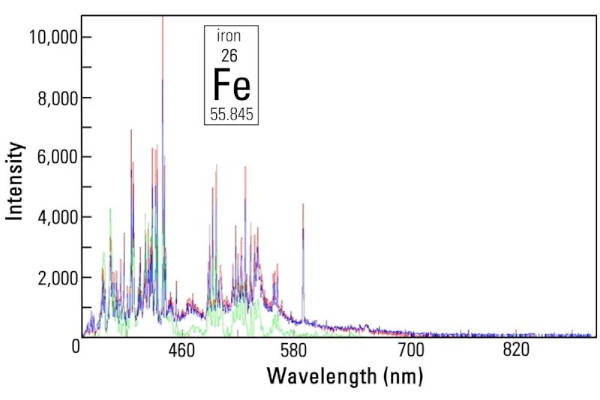 Trigger the analysis with a single click and a laser will strike the targeted spot on the sample. A plasma will be created and then break down. The resulting characteristic light spectrum shows the fingerprints of the elements present in the material.